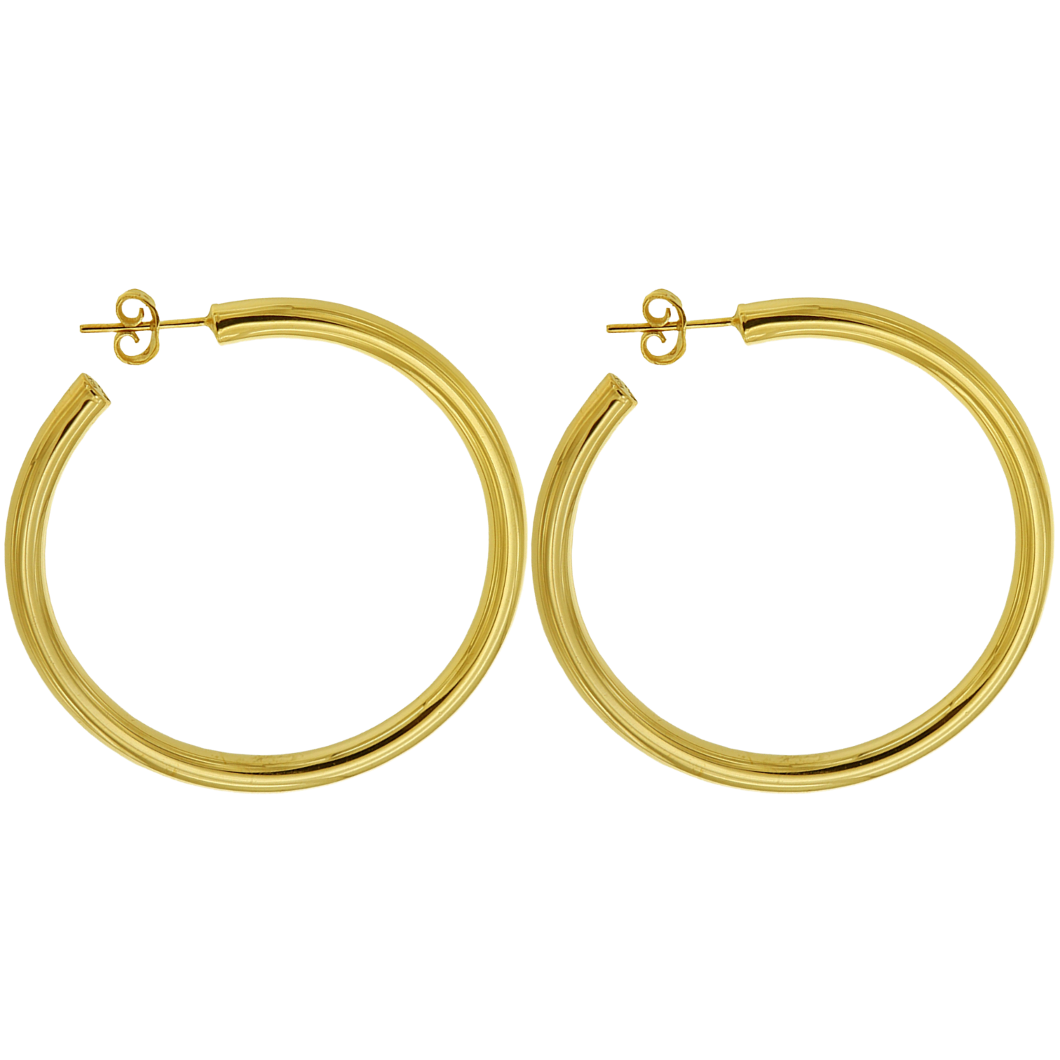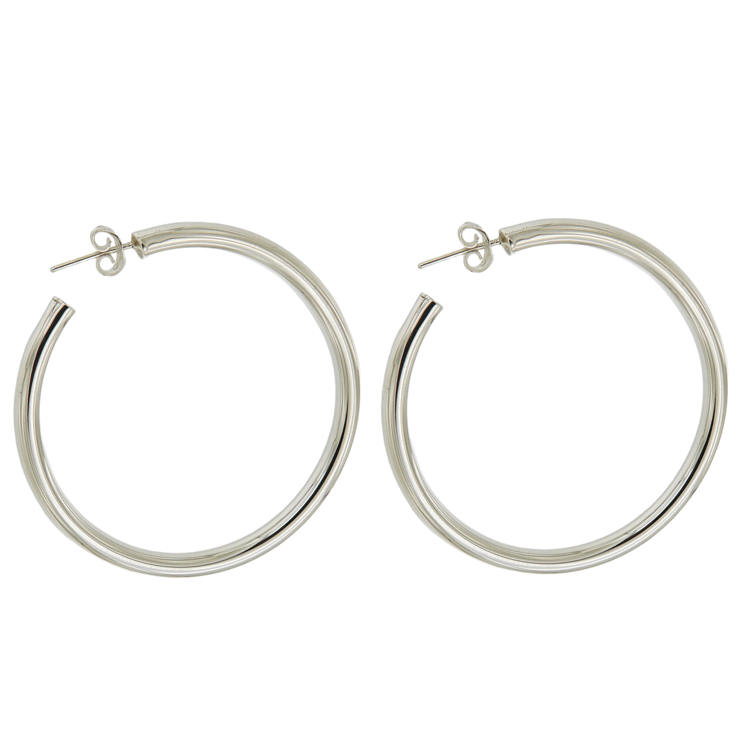 A classic bold hoop, lightweight and comfortable to wear. Size: 50 mm diameter, 4 mm thick.