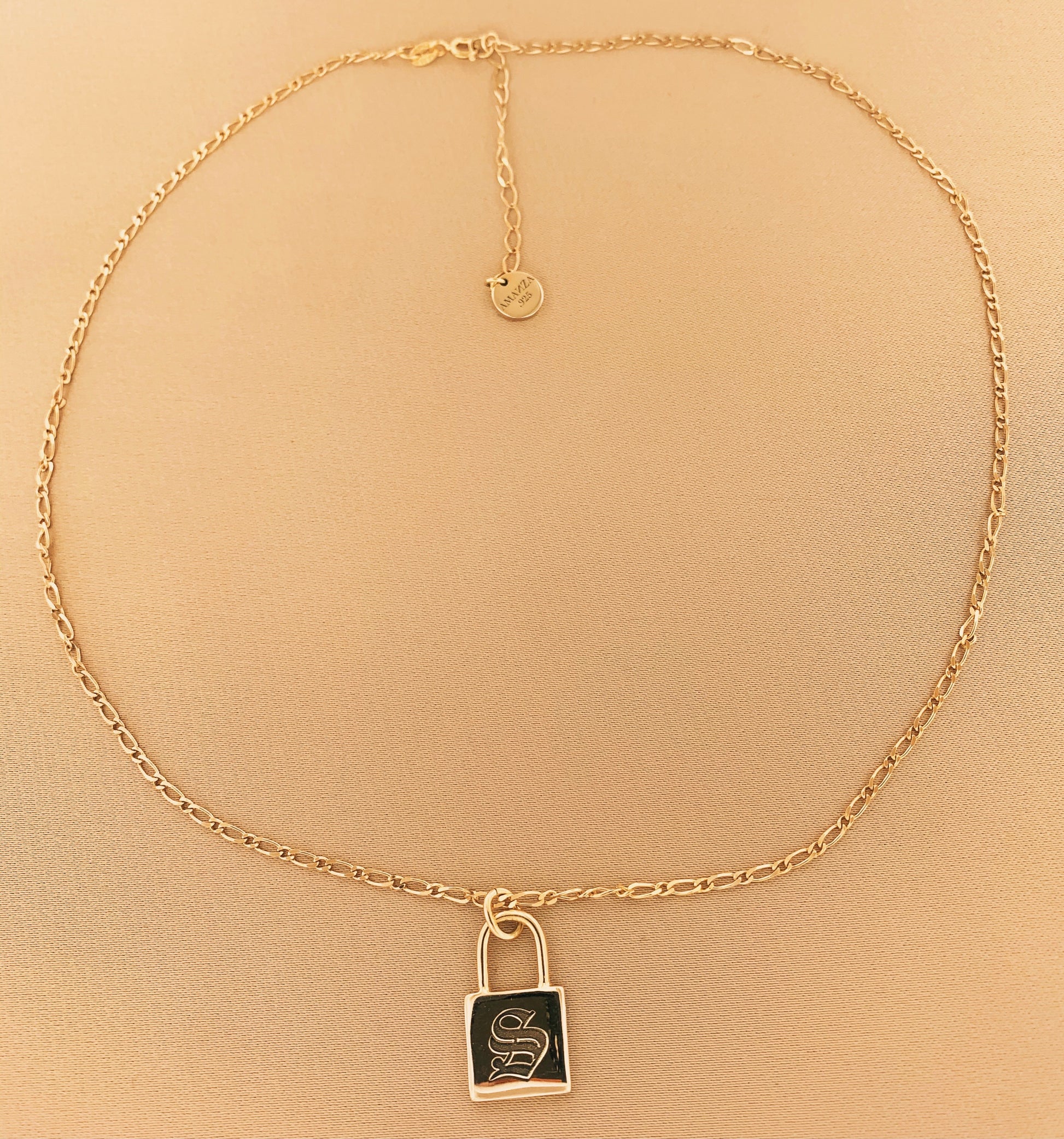 Cadena de eslabones anchos con un candado personalizable – graba tu inicial.