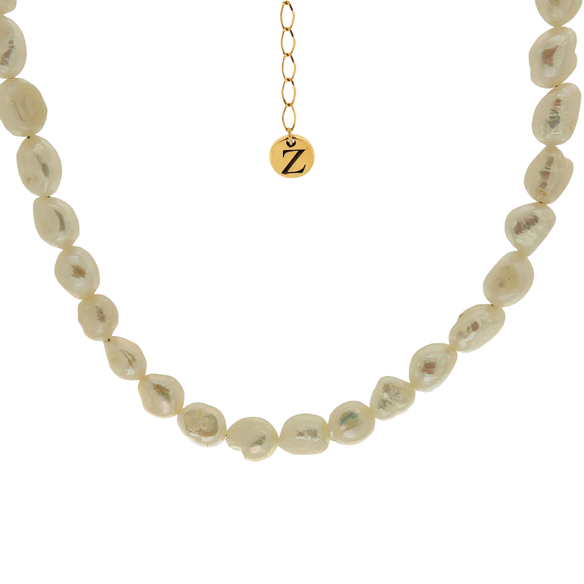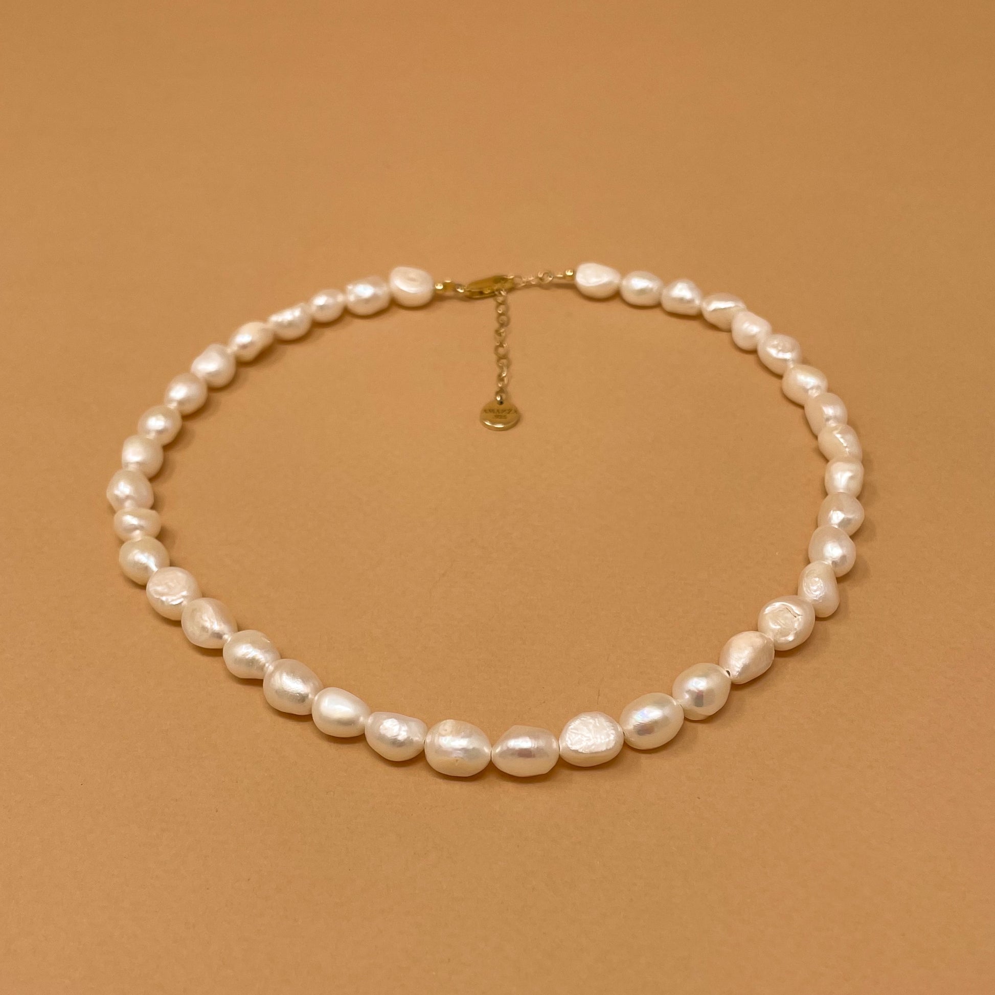 A delicate pearl necklace with natural, irregular pearls. Size: 40 cm + 5 cm extension.