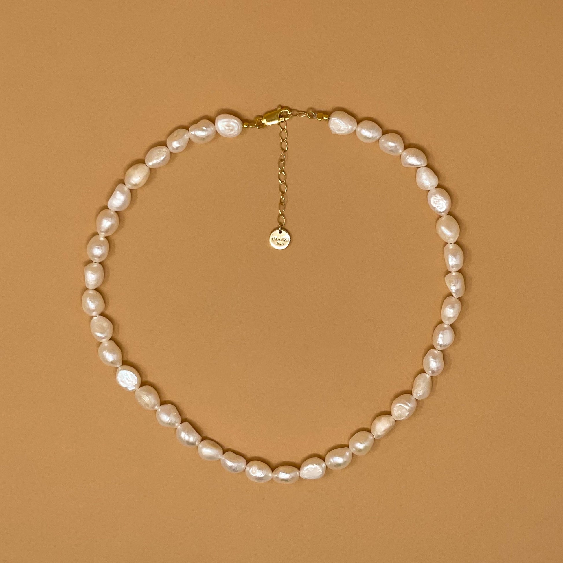 Collar delicado de perlas con perlas naturales e irregulares. Tamaño: 40 cm + 5 cm de extensión.