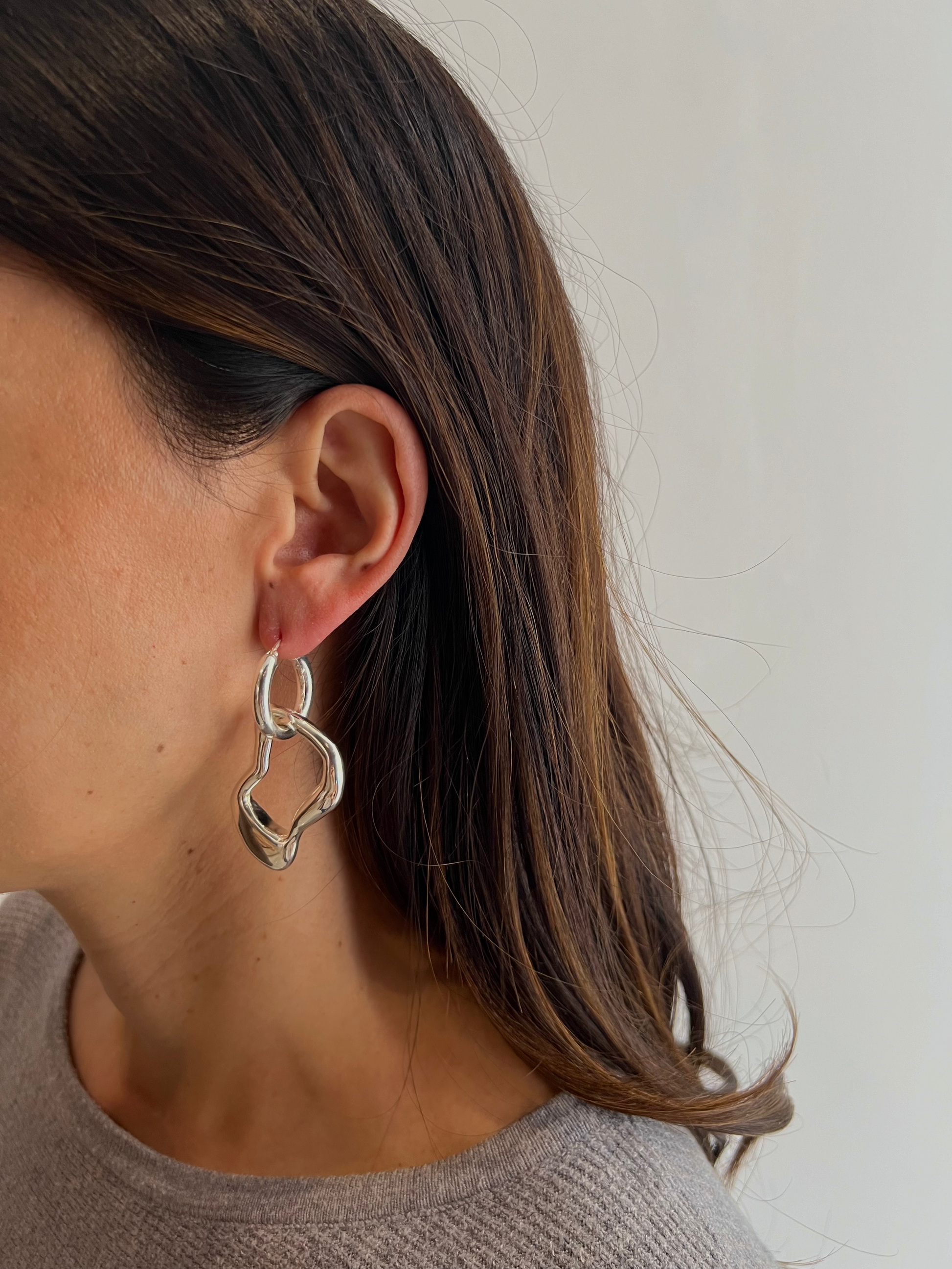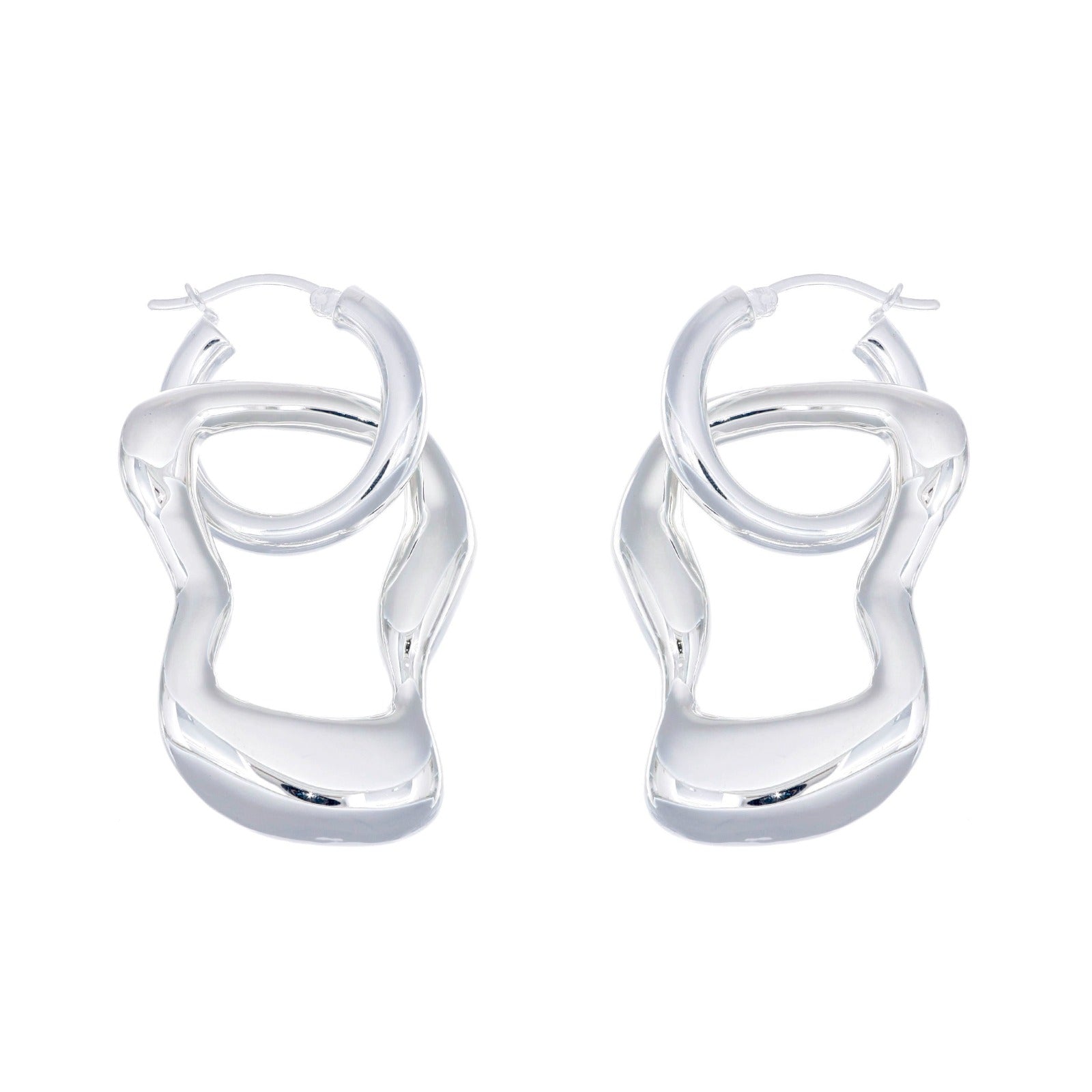 Circular hoops with an attached irregular-shaped hoop for a bold, layered effect.