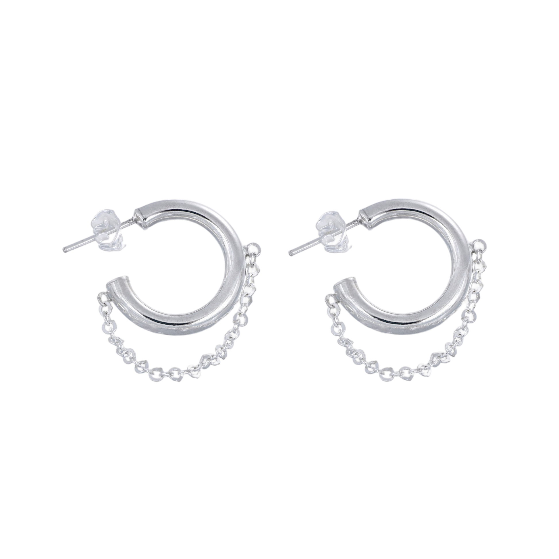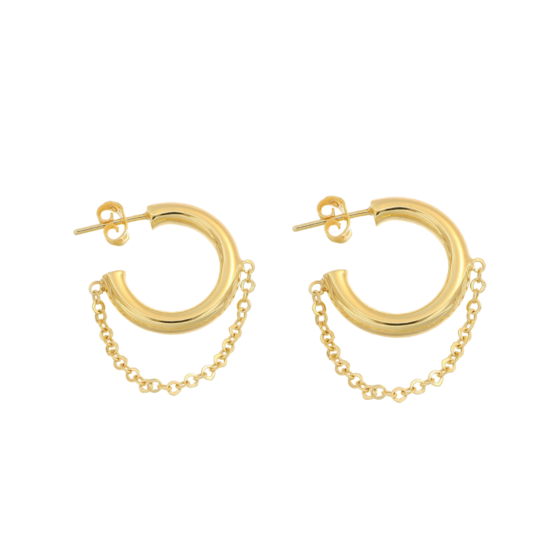 Medium-sized hoops with a unique chain detail hanging off. Lightweight & comfortable.