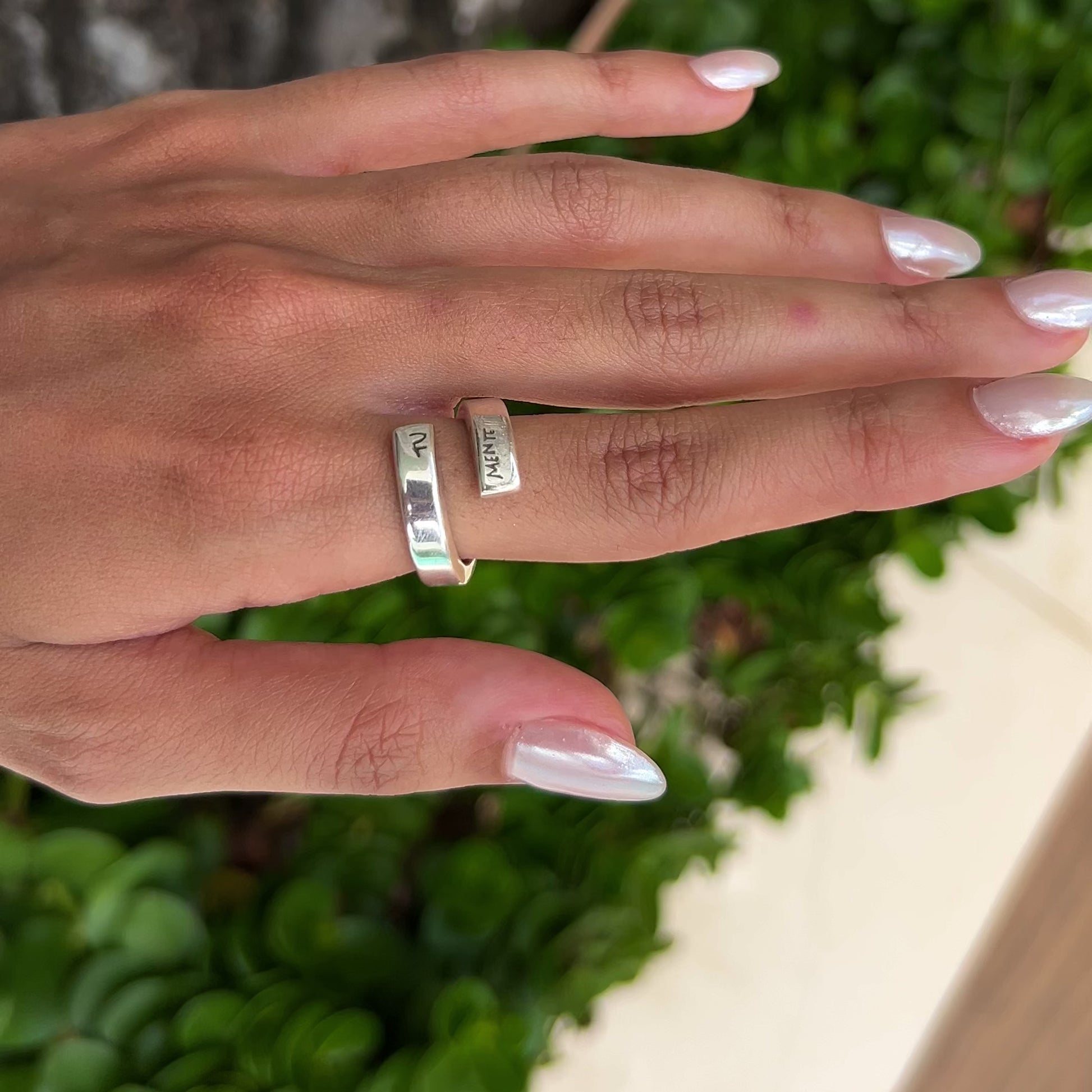 Anillo con un diseño en bucle grabado con "Vives en mi mente".