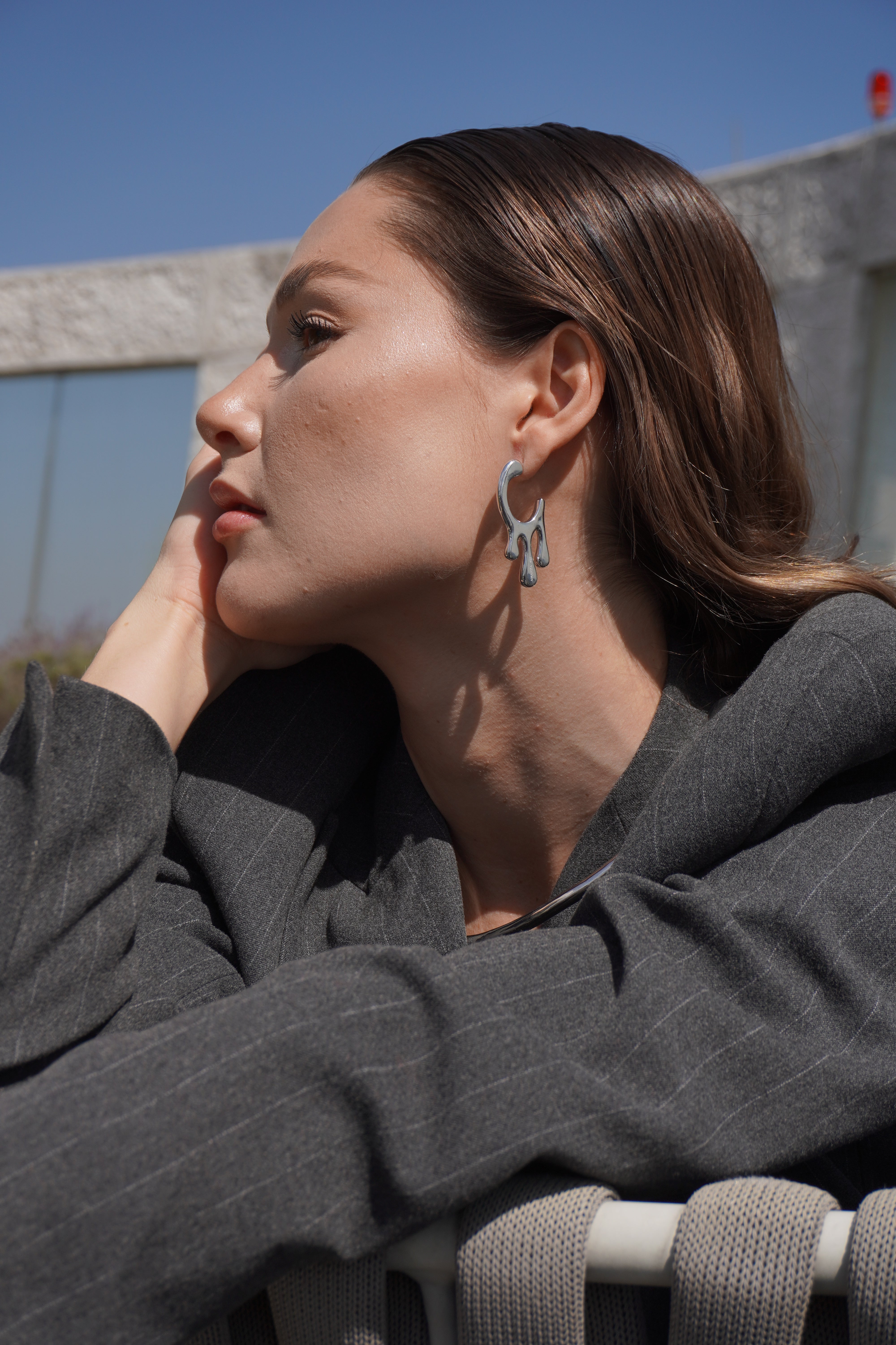Spira Earrings tiene la cualidad de las piezas bien diseñadas: aparece en el ángulo correcto, con el peso justo, en el lugar exacto donde la cara necesita luz. Un arete que no compite con quien lo lleva — lo complementa.